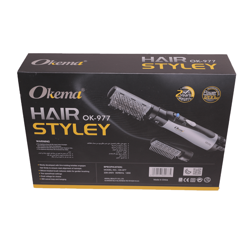 تم تصميم طقم تصفيف الشعر من اوكيما ليعمل على تسريح الشعر وتنعيمه بطريقة احترافية ويمكنك من لف وتمويج الشعر بشكل متألق.