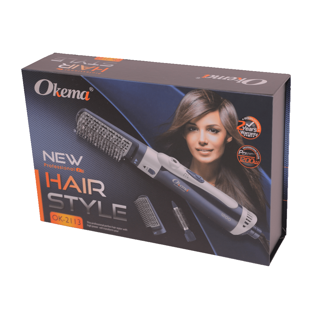 طقم جهاز تصفيف الشعر من اوكيما، يعمل على تمشيط الشعر وتصفيفه بشكل متألق.