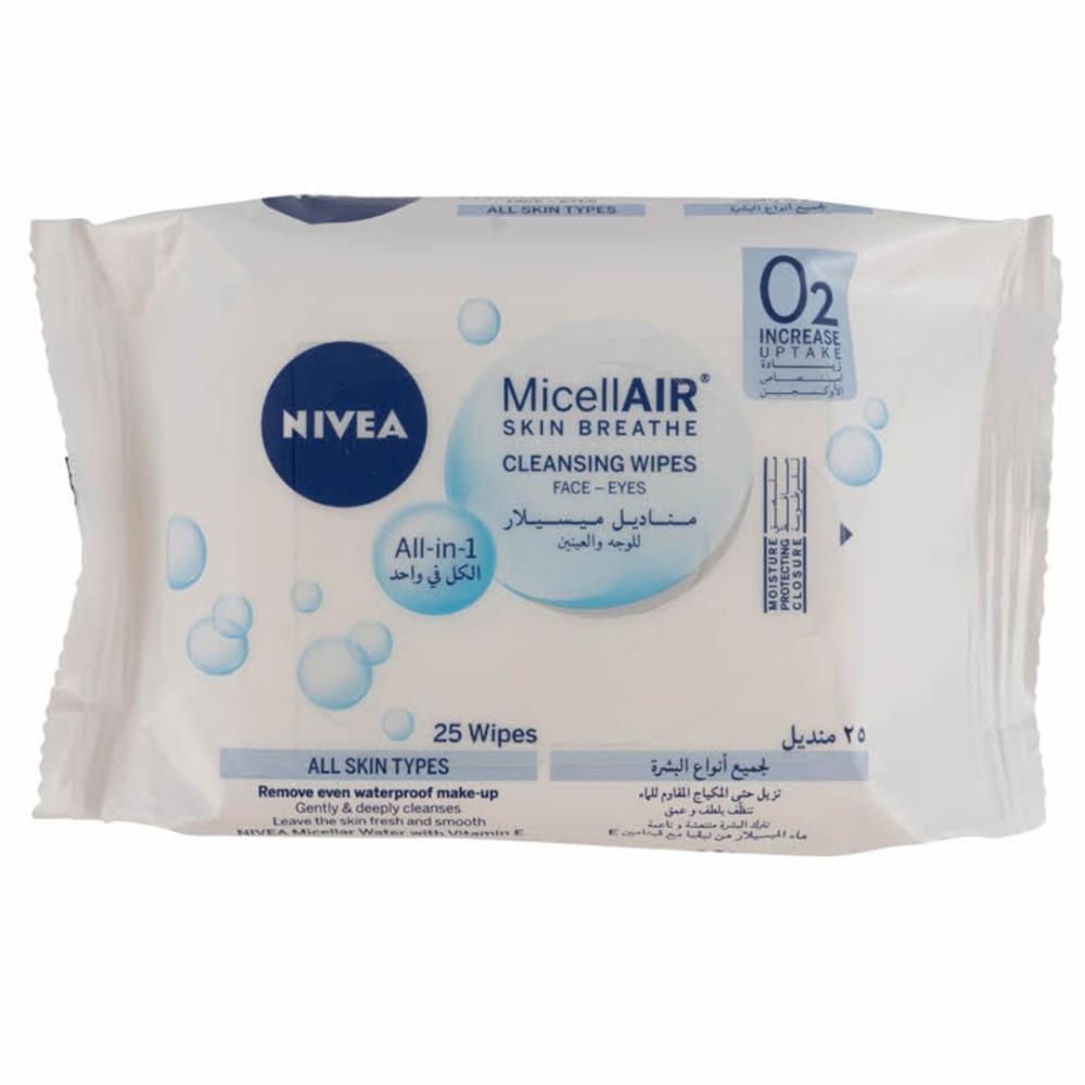 مناديل ميسيلار للوجة والعينين للجميع أنواع البشرة من نيفيا 25 منديل